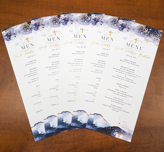 Our menu printing options are shown below so that you can find the best fit for your needs and budget. For more information on which fold or paper size will best fit your needs, feel free to contact us.