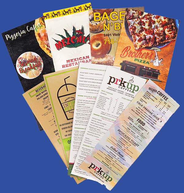 Menus are extremely important in today’s world of online ordering. While apps are convenient for consumers, a physical take-out menu helps customers bring you repeat business. Take-out menus also help convert delivery orders from apps to direct callers or even in-house customers. Generally, quality menus feature all of your food and beverage options along with photos that showcase your best dishes.